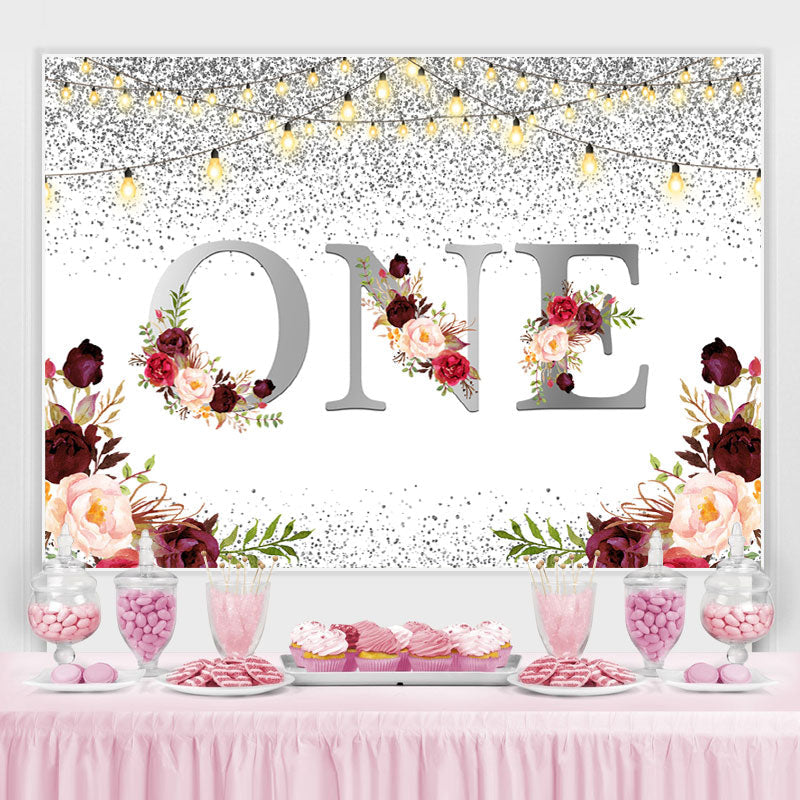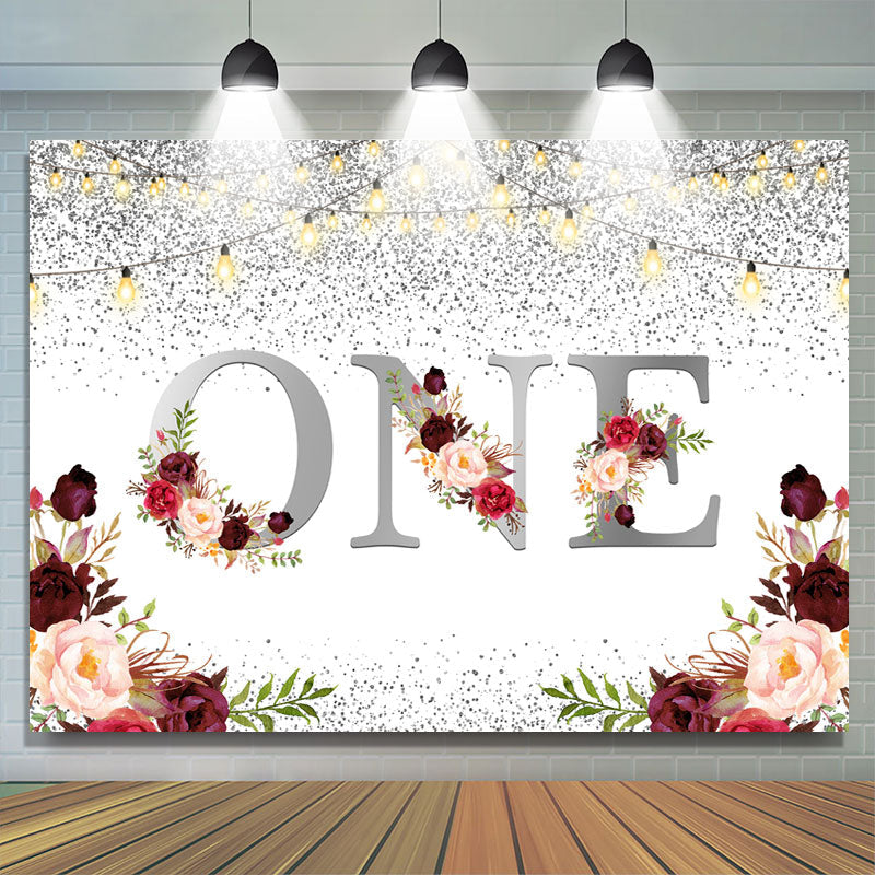 1 Burgund Blumen Funkeln Silber Erste Geburtstag Hintergrund