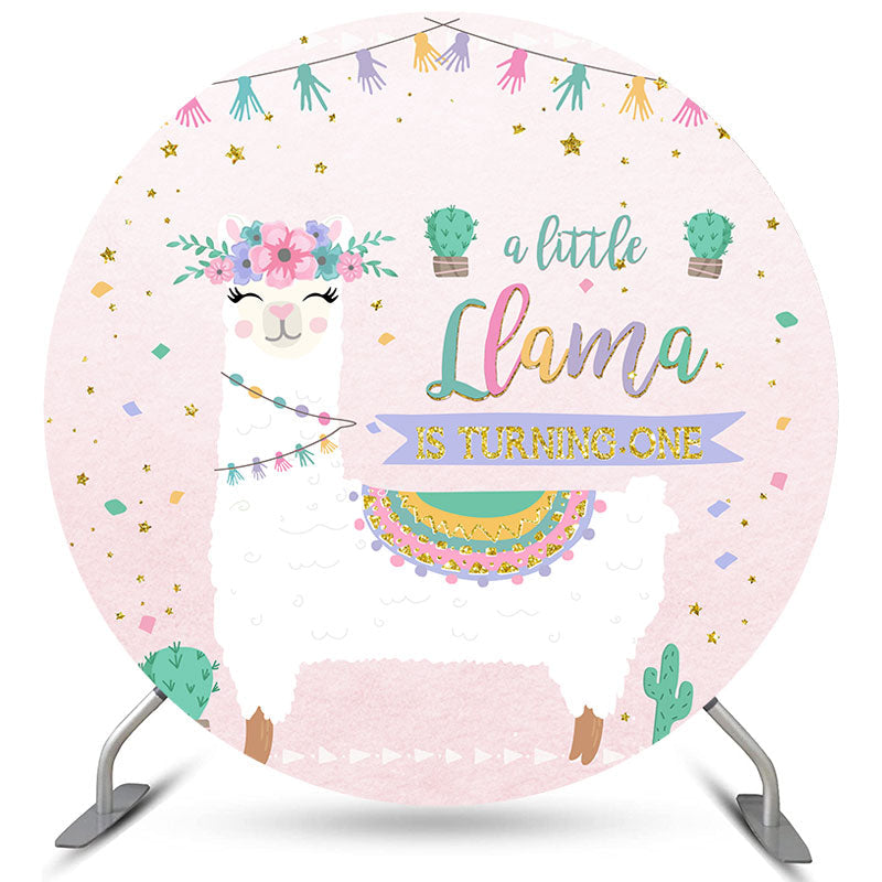 A Wenig Lama Ist Drehen Eins Geburtstag Runden Hintergrund
