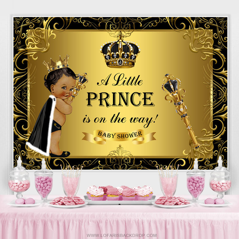 A Wenig Prinz Schwarz Gold Klassisch Babydusche Hintergrund