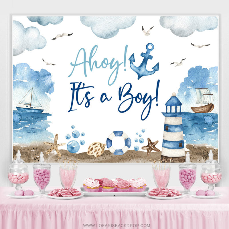 Ahoi Es ist A Junge Marine Anker Thema Babydusche Hintergrund