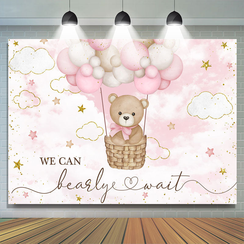 Bärig Warten Teddy Tragen Rosa Wolke Babydusche Hintergrund