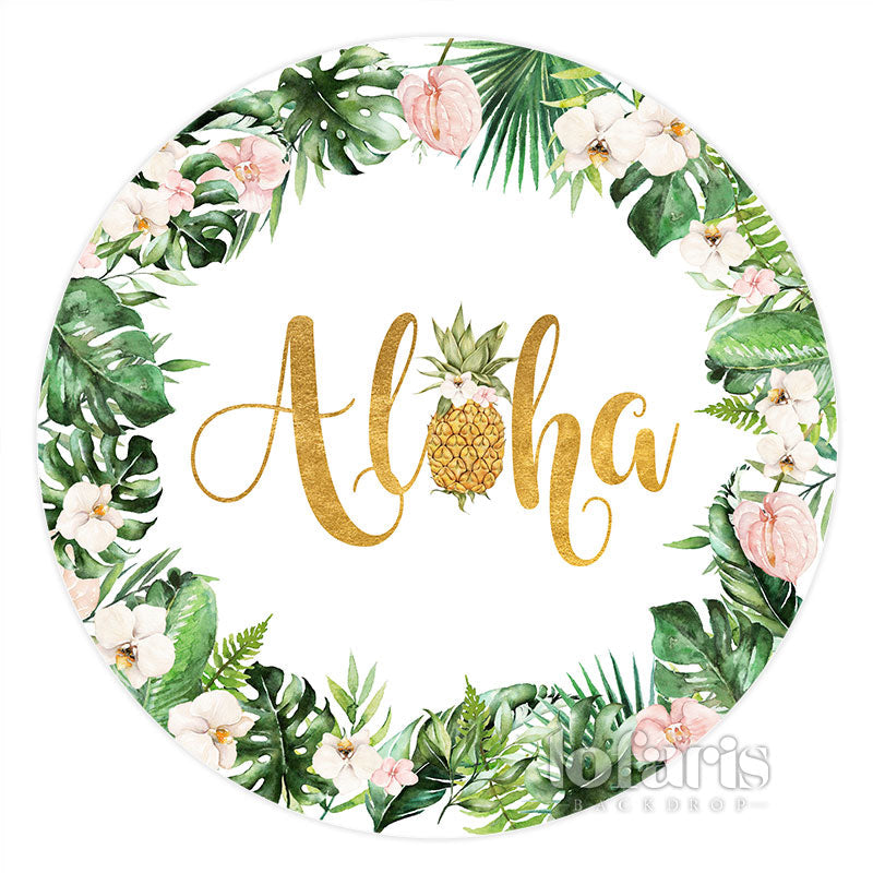 Blätter Und Blumen Aloha Ananas Sommer Runden Hintergrund