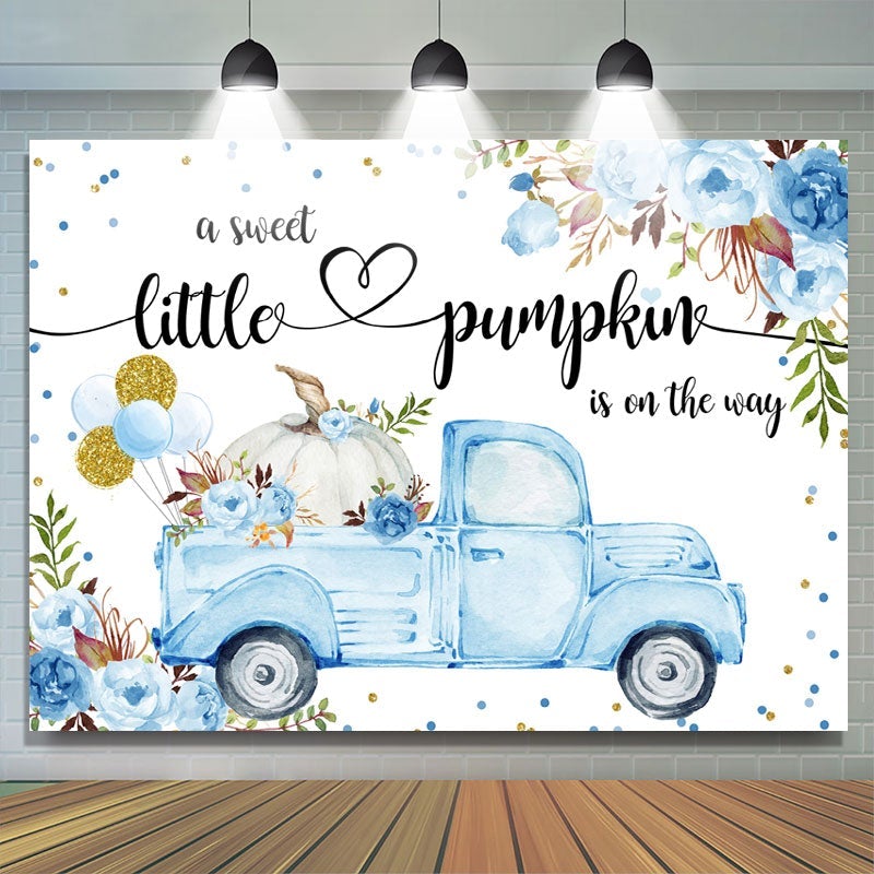 Blau Auto Und Blumen Kürbis babydusche Hintergrund