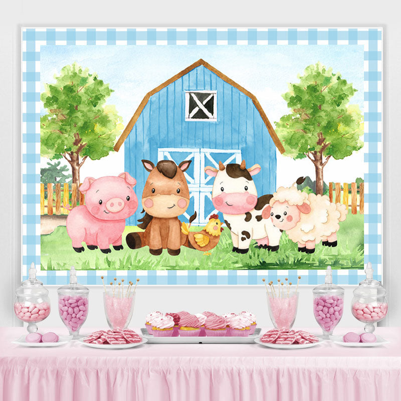 Blau Bauernhof Karikatur Tier Foto Hintergrund für Kinder