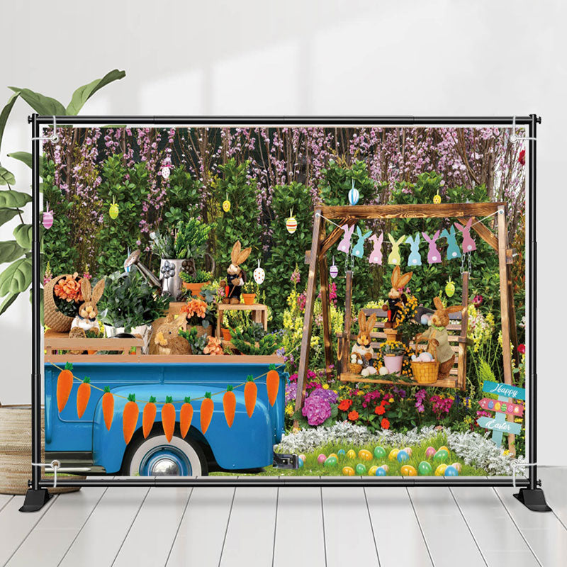 Blau LKW Blumen Baum Hase Eier Ostern Hintergrund