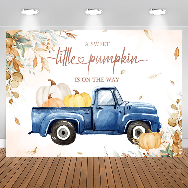 Blau LKW Wenig Kürbis Blatt Babydusche Hintergrund