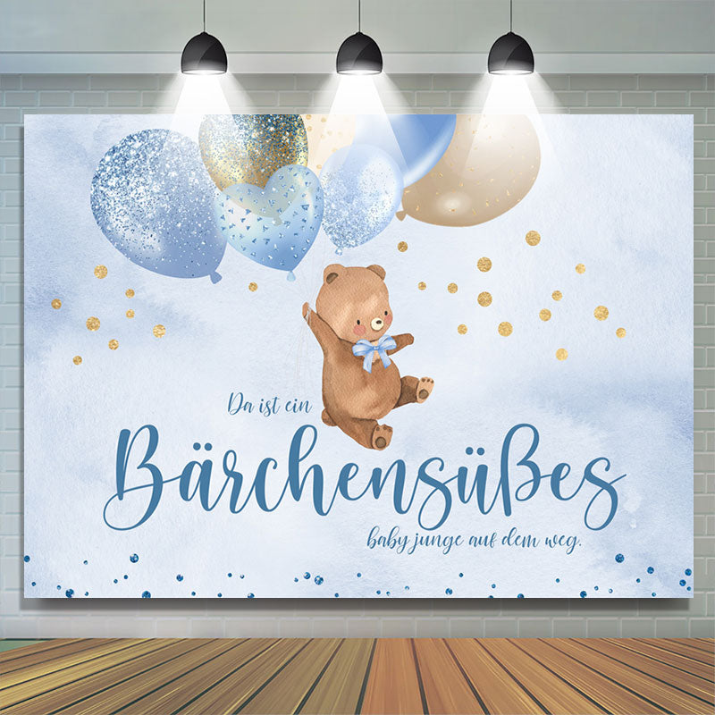 Blau Luftballons Teddy Tragen Baby Dusche Hintergrund