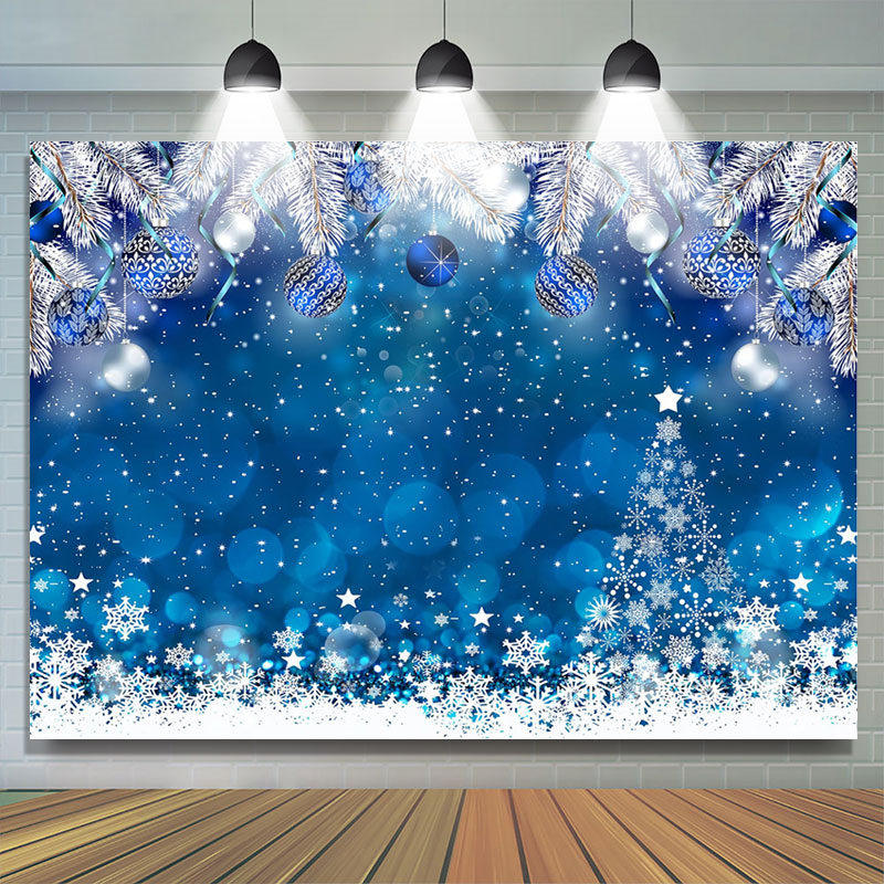 Blau Schneeflocke Ball Bokeh Weihnachten Foto Hintergrund