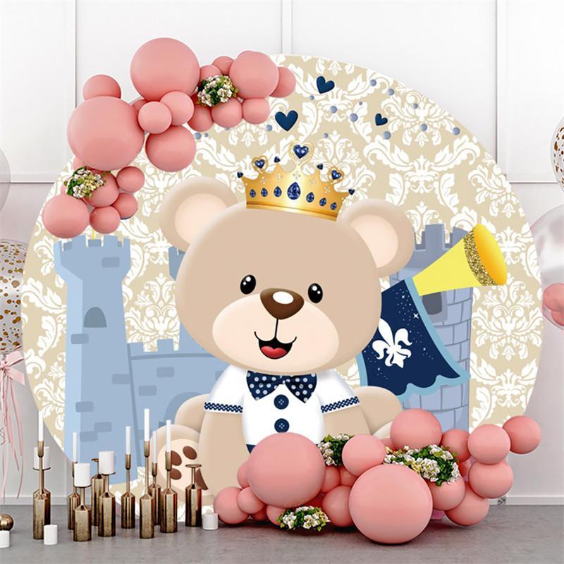 Blau Teddy Tragen Und Schloss Runden Baby Dusche Hintergrund