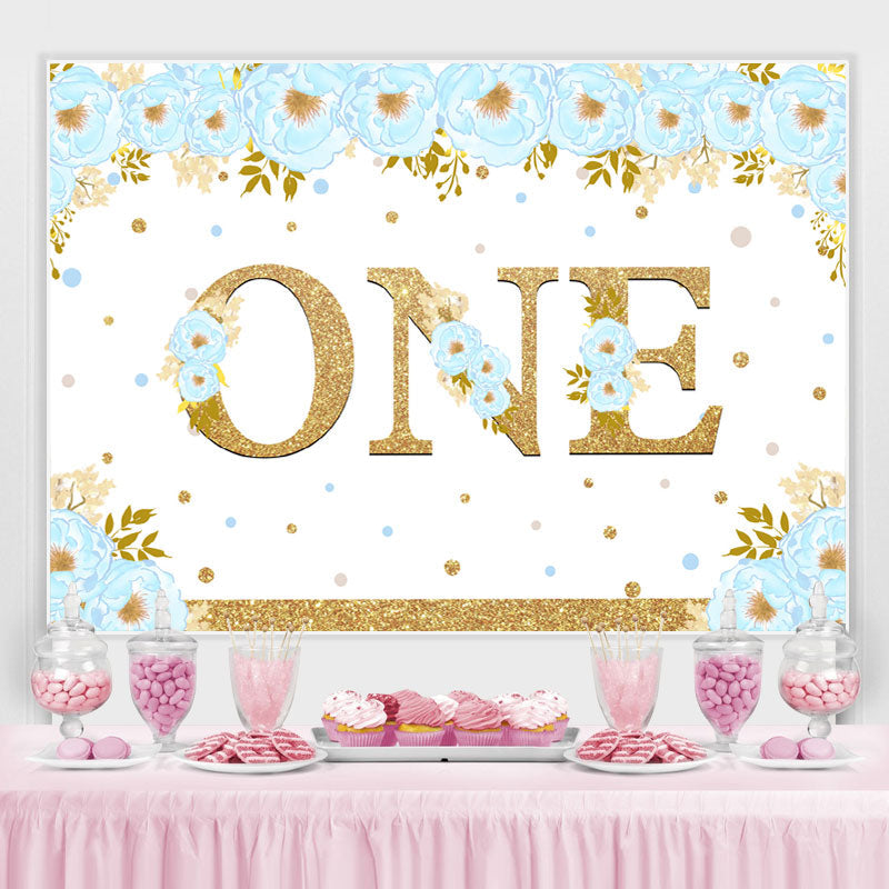 Blau Und Blumen Glücklich 1 Geburtstag Hintergrund Für Junge