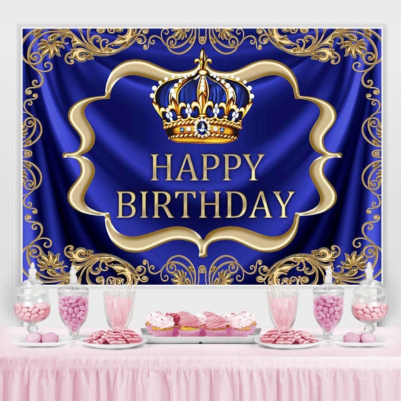 Blau Und Gold königlich Krone Geburtstag Hintergrund Design