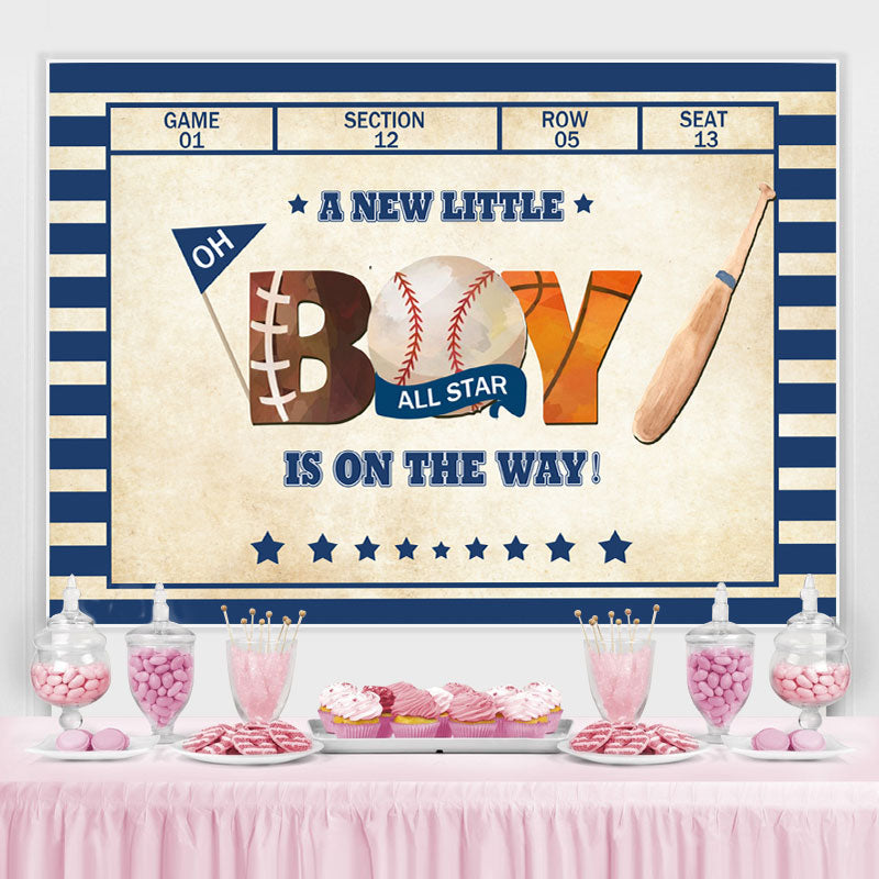 Blau Und Weiß Streifen Baseball Baby Dusche Hintergrund