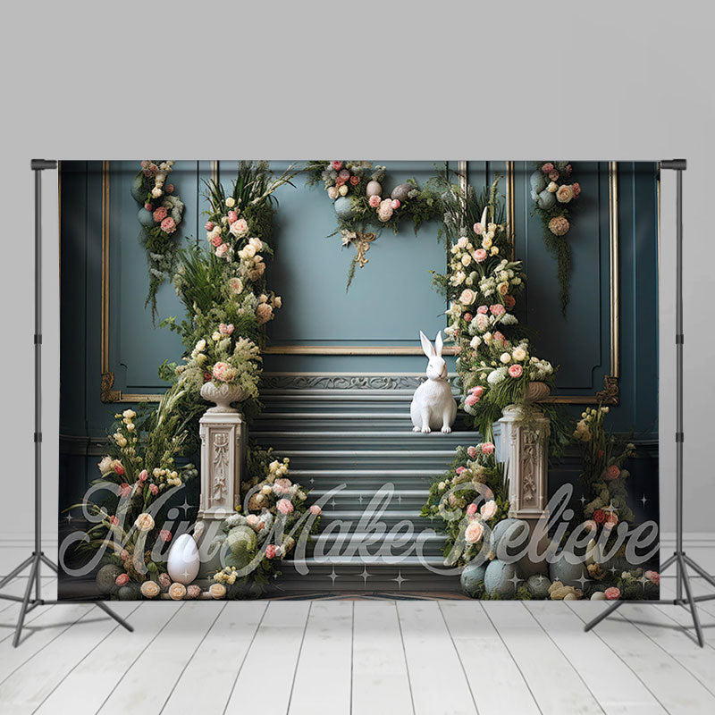 Blau Wand Blumen Eier Weiß Kaninchen Ostern Hintergrund