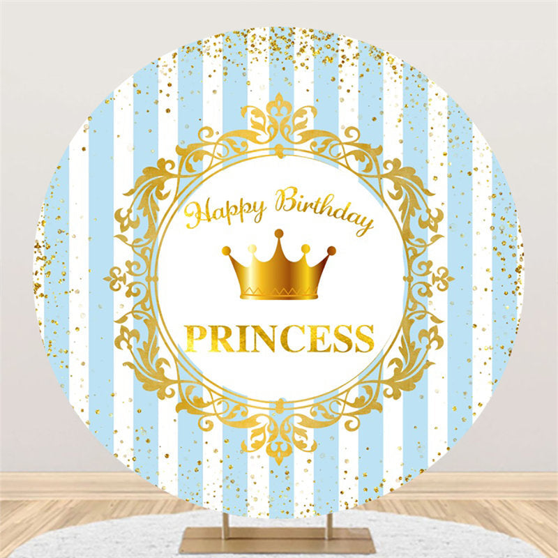 Blau Weiß Streifen Runden Gold Prinzessin Geburtstag Hintergrund
