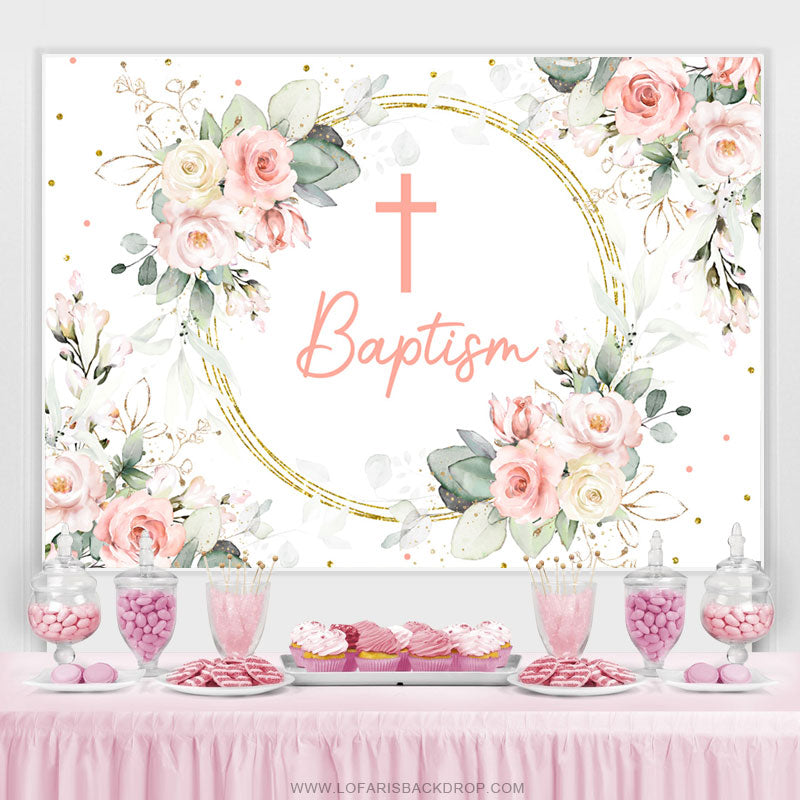 Blumen Baby Rosa Kreuzen Taufe Hintergrund Für Mädchen