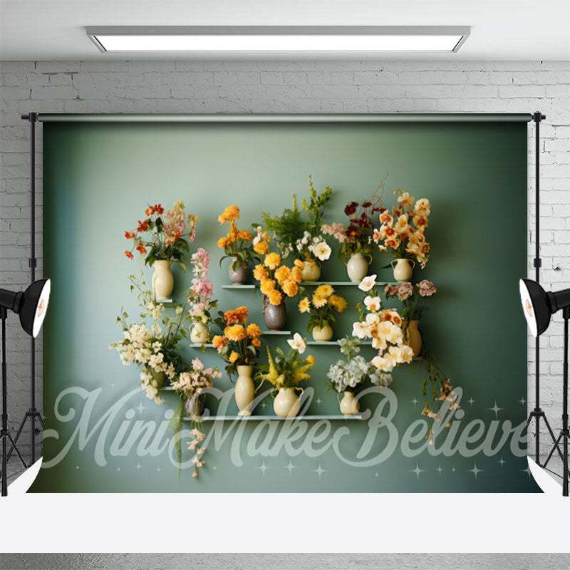 Blumen Blumentopf Regal Grün Wand Frühling Hintergrund