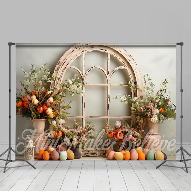 Blumen Bunt Eier Bogen Fenster Ostern Hintergrund