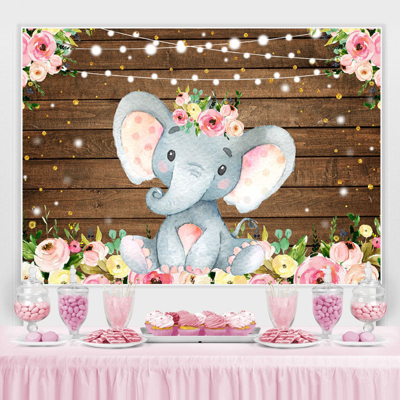 Blumen Elefant Licht Funkeln Holz Geburtstag Hintergrund für Mädchen