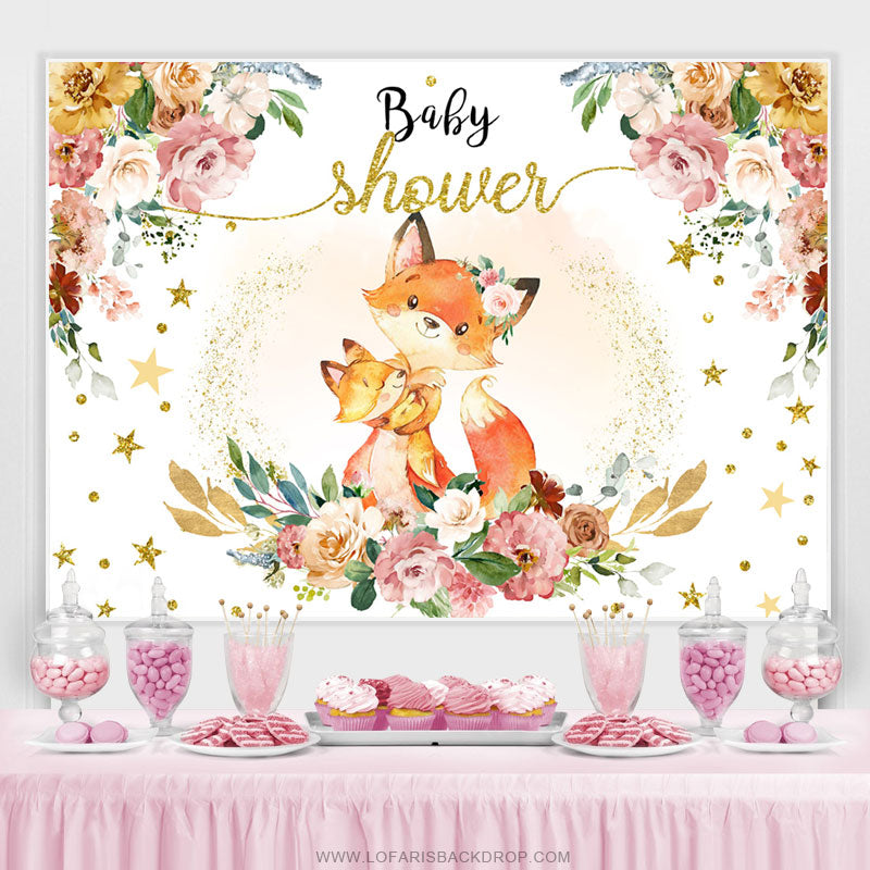 Blumen Fuchs Umarmung Bei Nacht Süss Babydusche Hintergrund