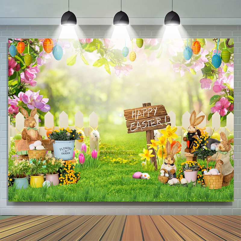 Blumen Hase Garten Glücklich Ostern Tag Hintergrund