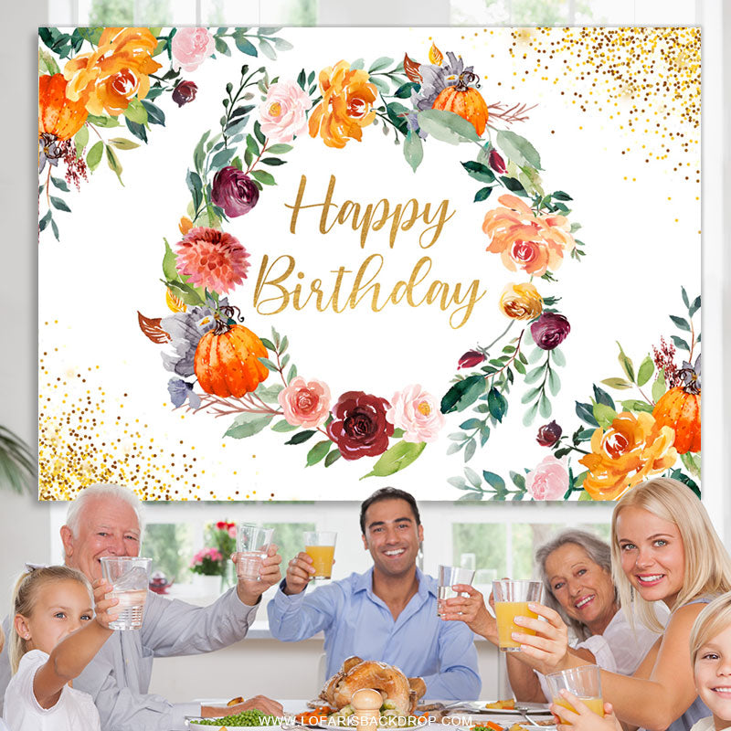Blumen Kreis Mit Golden Punkte Glücklich Geburtstag Hintergrund