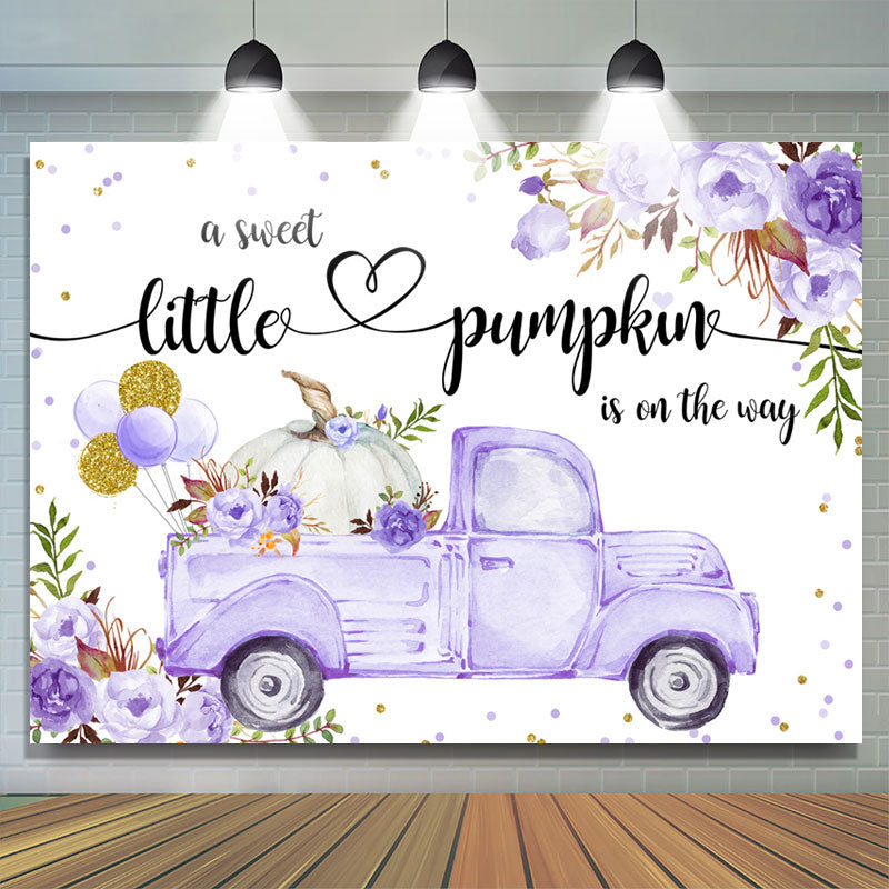 Blumen Lila LKW Mit Kürbis Babydusche Hintergrund