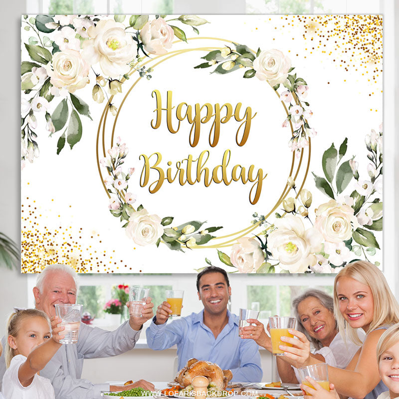 Blumen Mit Golden Kreis Punkte Glücklich Geburtstag Hintergrund