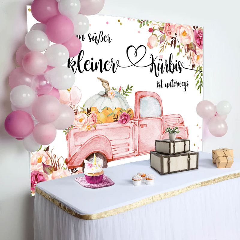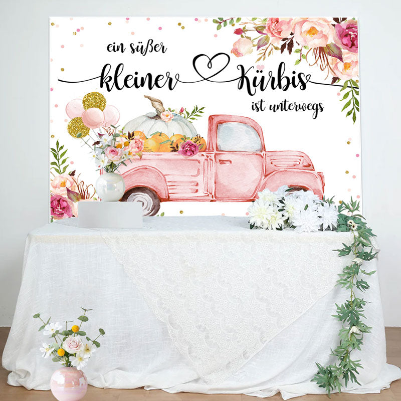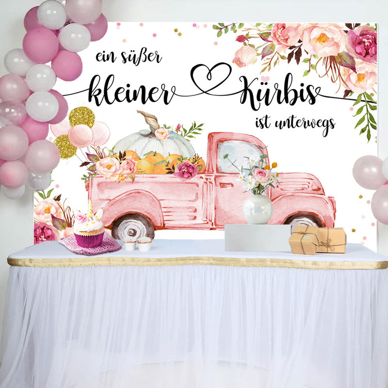 Blumen Rosa Auto Kürbis Baby Dusche Hintergrund