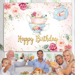 Blumen Teekanne Schön Frühling Glücklich Geburtstag Hintergrund