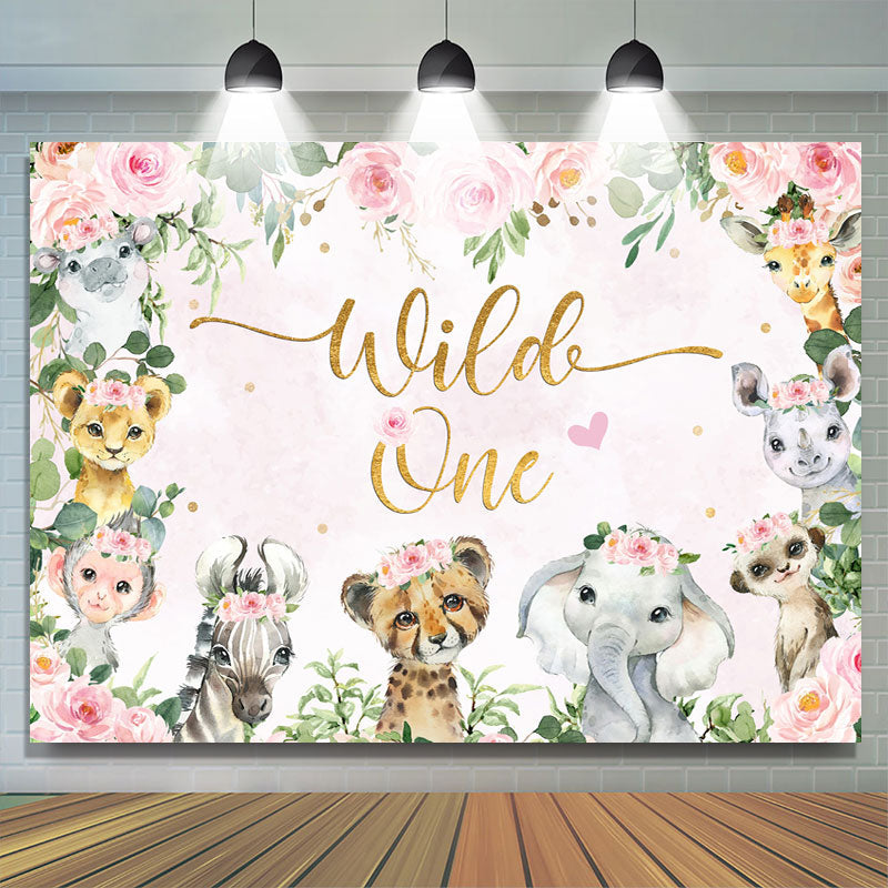 Blumen Tiere Wild Eins Rosa Glücklich Geburtstag Hintergrund