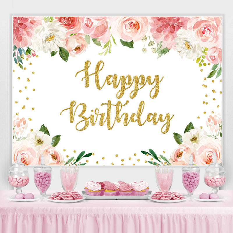 Blumen Und Funkeln Glücklich Geburtstag Hintergrund Für Mädchen