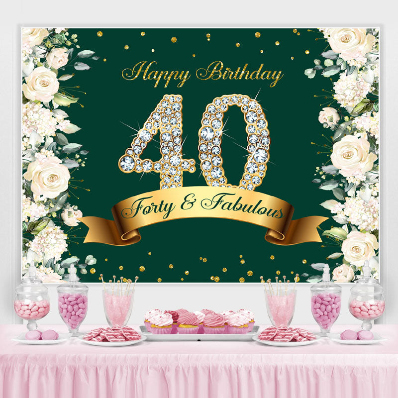 Blumen Und Funkeln Grün Glücklich 40 Geburtstag Hintergrund