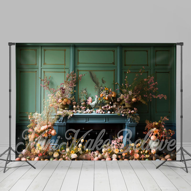 Bunt Blumen Eier Grün Wand Ostern Hintergrund