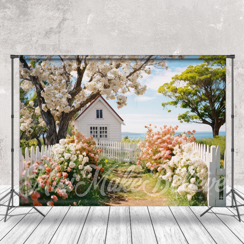 Bunt Blumen Hölzern Zaun Haus Frühling Hintergrund