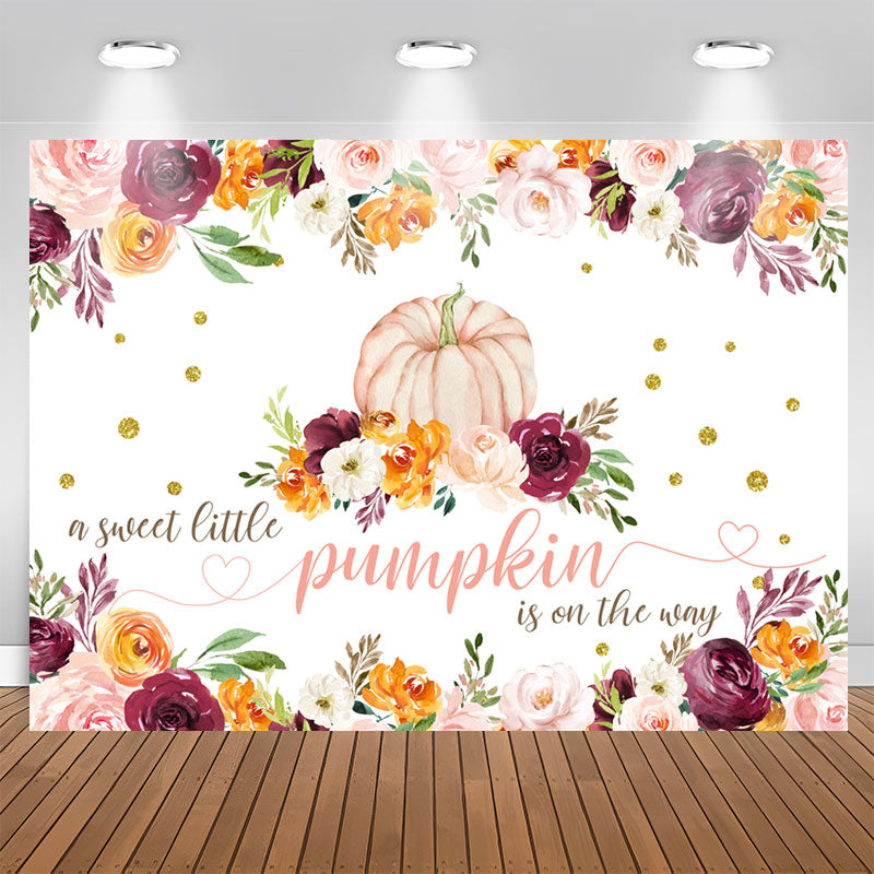 Bunt Blumen Süss Kürbis Babydusche Hintergrund