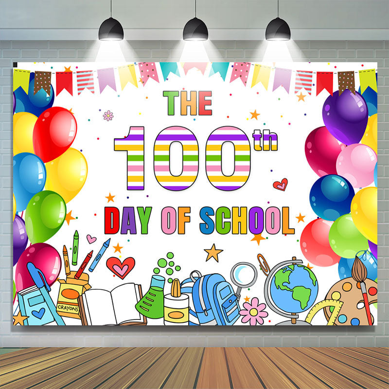 Bunt Luftballons Der 100 Tag Von Schule Hintergrund