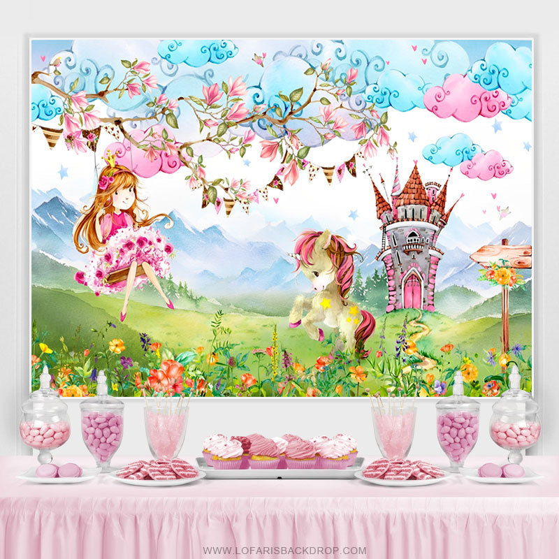 Cartoon Pferd Blumen Geburtstagsparty Hintergrund für Mädchen