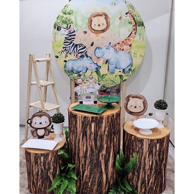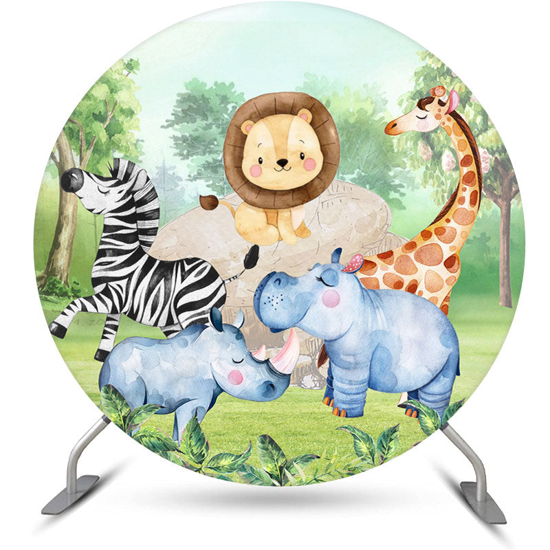 Dschungel Tiere Und Grün Wald Runden Geburtstag Hintergrund Bausatz