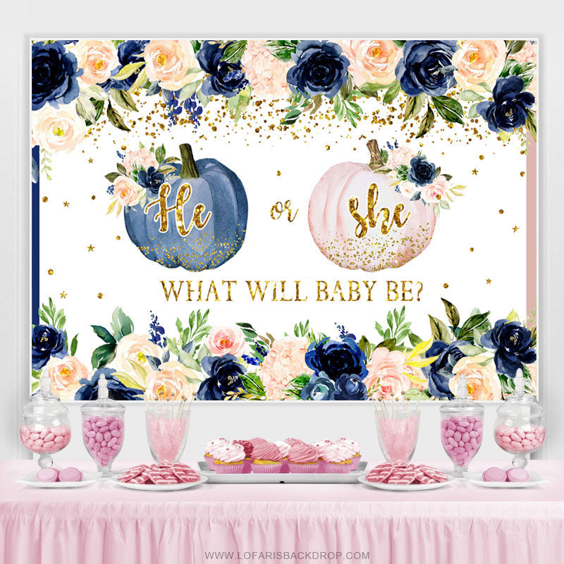 Dunkel Blau Und Licht Rosa Kürbis Babydusche Hintergrund