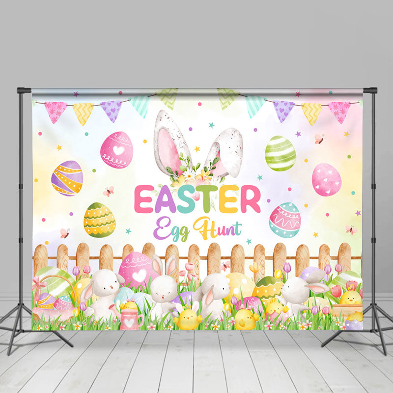 Ei Jagd Kaninchen Pflanzen Hölzern Zaun Ostern Hintergrund