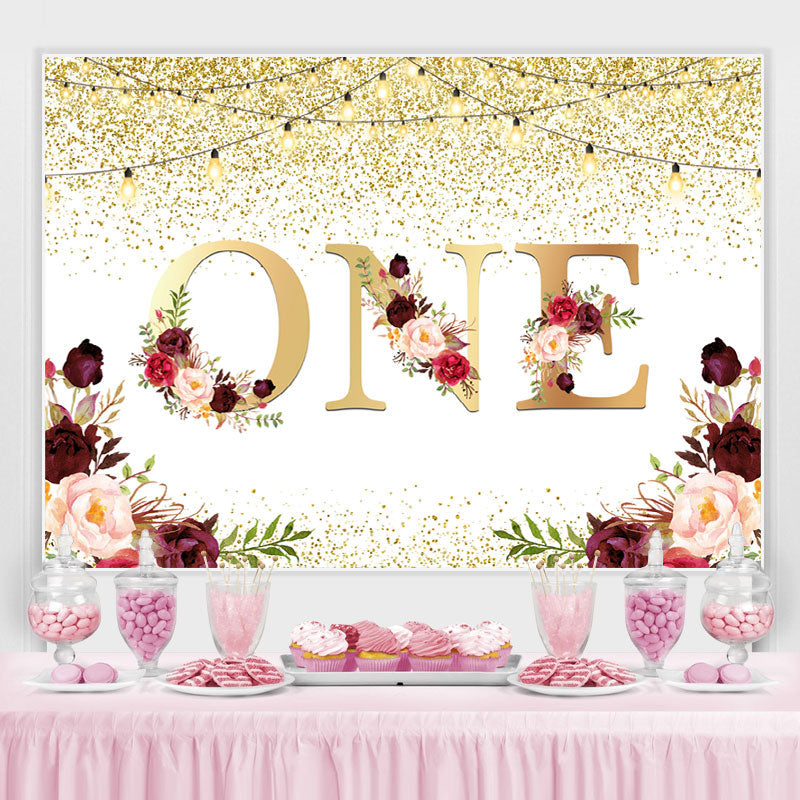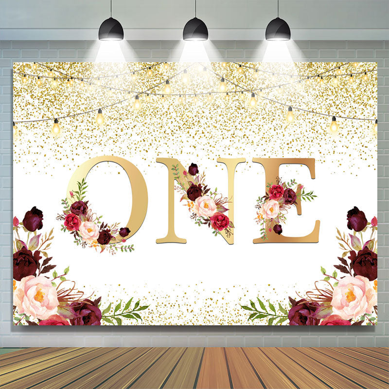 Eins Blumen Gold Funkeln Beleuchtung Erste Geburtstag Hintergrund