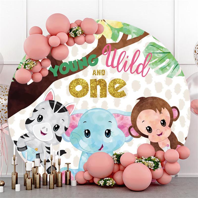 Eins Geburtstag Jung Wild Elefant Runden Party Hintergründe
