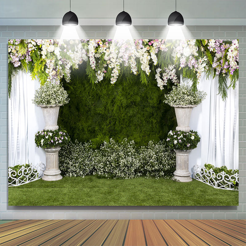 Elegant Weiß Vorhang Grün Blumen Hochzeit Hintergrund