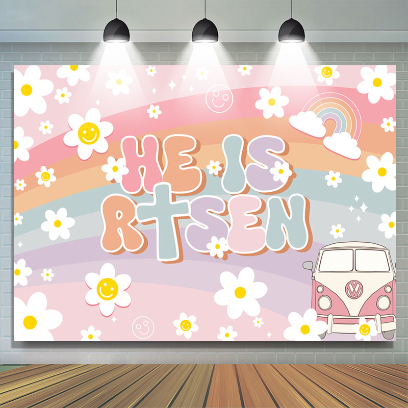 Er Ist Auferstanden Groovig Regenbogen Blume Ostern Hintergrund