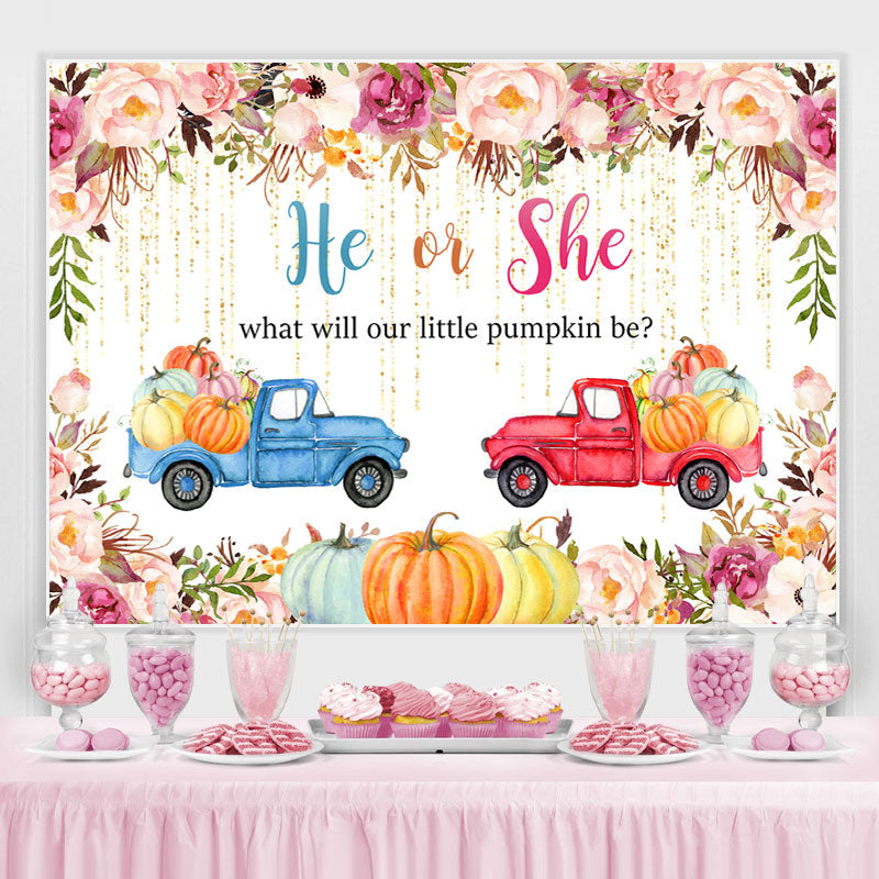 Er Oder Sie Blumen Und Kürbis Fallen babydusche Hintergrund