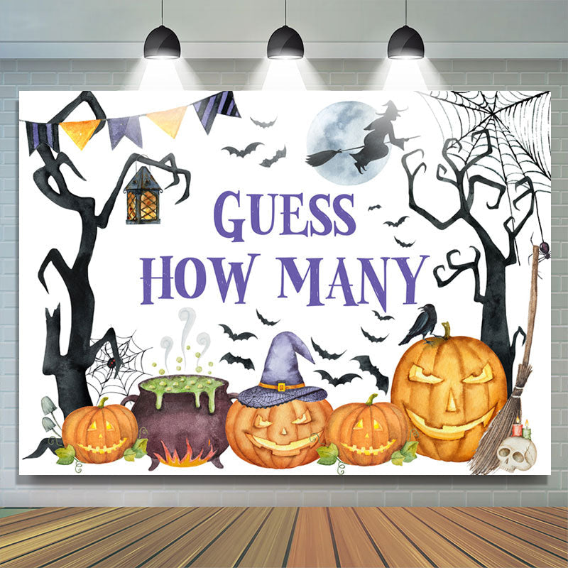 Erraten Wie Viele Kürbis Hexe Weiß Halloween Hintergrund
