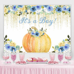 Es ist A Junge! Blau Blumen Kürbis babydusche Hintergrund