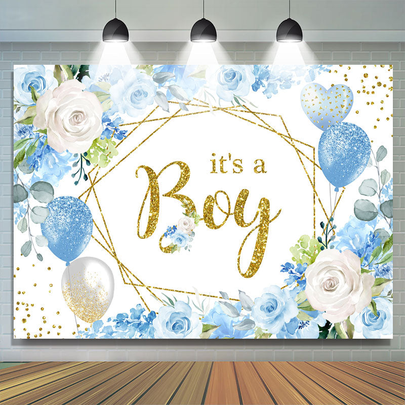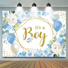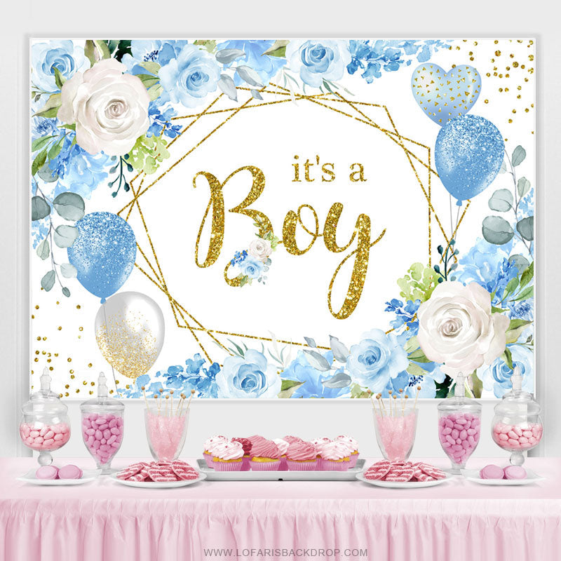 Es ist A Junge Blau Rose Ballon Babydusche Backdorp Für Junge