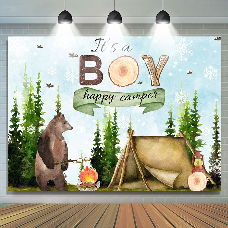 Es ist A Junge Glücklich Wohnmobil Mit Tragen Baby Dusche Hintergrund