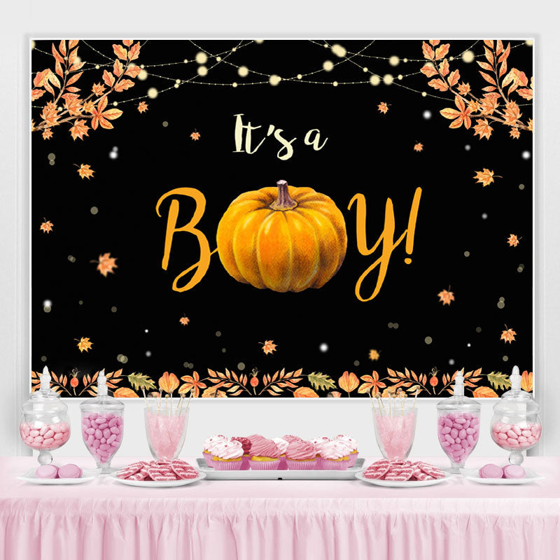 Es ist A Junge Kürbis Und Blätter Hintergrund für babydusche